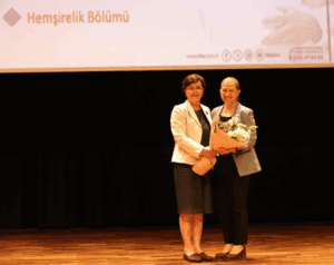 Program kapsamında, hemşirelik alanına önemli katkılarda bulunan konuk Prof. Dr. Ayfer KARADAKOVAN ve Doç. Dr. Betül TOSUN hemşirelikte akademik ve klinik gelişim süreçlerine dair bilgi ve deneyimlerini katılımcılarla paylaştı. Doç. Dr. Betül TOSUN ulusal ve uluslararası düzeyde hemşirelikte iş birliği ve gelişim fırsatlarına dair bilgi ve deneyimlerini paylaştı. Gaziantep’teki çeşitli sağlık kuruluşlarının bakım hizmetleri müdürleri de etkinliğe katılarak öğrencileri tebrik etti.
